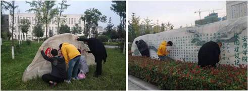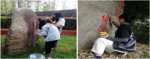920--23日,best365官网美术学专业员工开展了为期4天的美化校园实践教学活动。在公司宣传部、统战部的统一部署下,best365官网副经理孙海洋带领美术学专业30余名同学制作方案、购置工具、颜料,采取刀挖去垢、清洗去尘、一遍打底、二遍分层、三遍施色等方式,分工合作,为6块大型校园文化墙和文化石进行增色添彩。