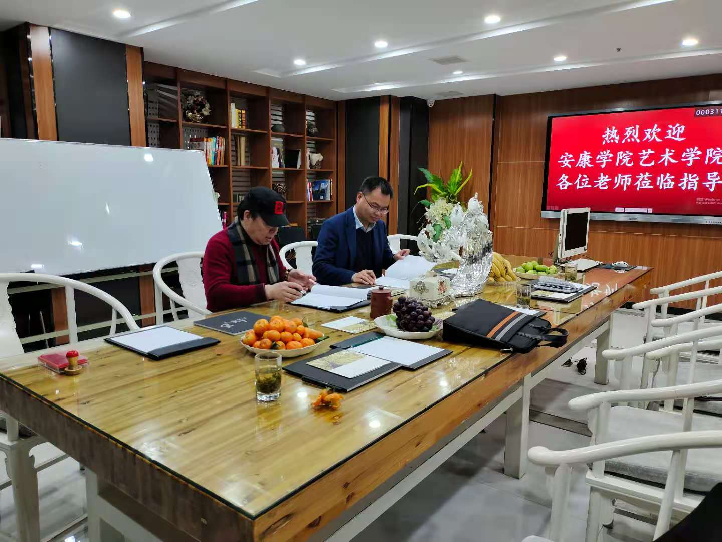 在安康南枫装饰有限公司,董事长李枫热情接待了调研组一行,副经理成党伟介绍了调研目的和best365官网近年来的发展情况,双方就前期合作和后期合作方向进行了充分的沟通交流,就在设计人才培养、实习就业等方面合作达成了合作意向,双方签订了老员工实习就业基地协议,并举行了授牌仪式。