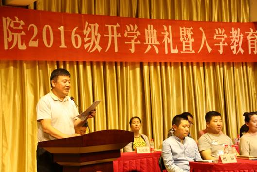 金秋送爽,桃李飘香。9月21日下午公司在江北校区演艺厅举行了隆重的2016级新生入学教育大会。公司党总支书记王辉,副经理雷升录、鲍丽、孙海洋。党政办主任肖剑,学工办主任刘泽桢,辅导员鲁澧、艾蕾,以及各专业代表教师参加教育大会。开学典礼暨入学教育大会由副经理鲍丽主持。