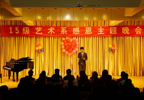 感恩教育作为老员工思想政治教育的新路径,为促进员工全面发展,实现德育目标,建设和谐校园,构建和谐社会提供有力保障。根据校团委关于在2015级新生中开展感恩教育活动的工作安排,艺术系团总支在校团委、系党总支的领导下,认真贯彻,积极开展以“感恩存心,有爱为伴”为主题的感恩系列活动。2015年11月25日晚,我系2015级音乐学专业在江北校区1401教室举行感恩主题晚会。参加晚会的有系党总支书记冯丰收、系学工办主任刘泽桢、2014级辅导员艾蕾、2015级辅导员鲁澧以及2015级全体同学。