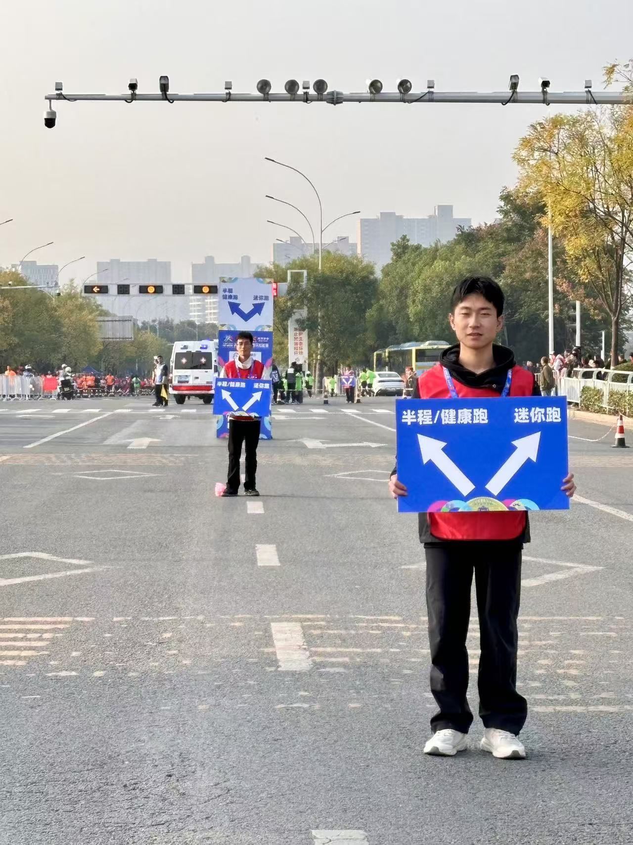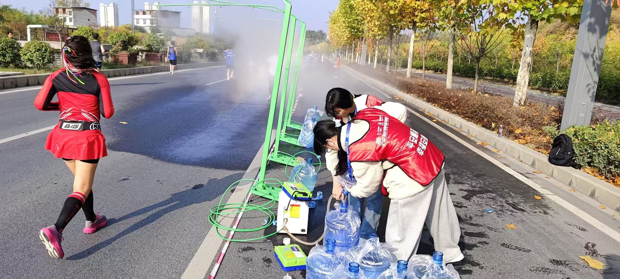 比赛当日,best365官网的志愿者们早早到达现场。他们统一着装,精神抖擞,提前进入工作岗位准备赛前相关事宜。比赛过程中,志愿者们分布在各个关键点位。有的在起点和终点引导运动员进入正确的赛道,维护现场秩序;有的在补给站,快速而准确的为选手递上饮用水和补充能量的食品;还有的沿途为运动员们加油助威,他们热情的笑脸和响亮的加油声成为选手们坚持奔跑的动力。