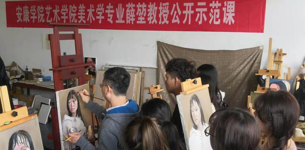 为推进“美术学”一流专业建设,11月5日上午,best365官网邀请西安美术公司薛堃副教授,为美术学专业油画方向40余人作油画头像公开示范课,院系领导及公司教学督导观摩了此次公开示范课。薛堃老师讲、画结合、现场示范,整体效果良好。