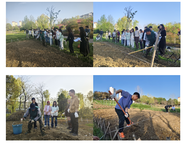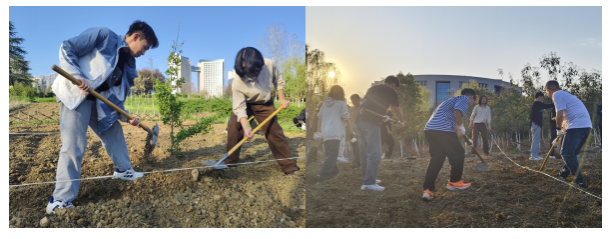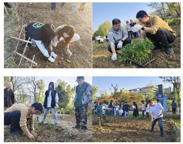 活动现场,师生们热情高涨,分工明确,大家手持工具翻土、播种、浇水。在种植过程中,师生们充分发挥艺术专业优势,对种植区域进行了创意规划,不仅考虑到植物的生长需求,还融入了美学设计,让厚植园在未来不仅是一片绿色的田园,更将成为一件独特的大地艺术作品。活动还特别邀请了后勤保障处尤师傅到场指导,为员工们讲解各类植物的特性、种植方法和养护要点。