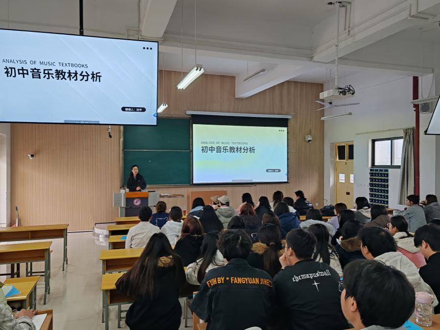 刘老师以《初中音乐教材分析》为题,拉开了此次课程的序幕。课堂上,刘老师凭借多年深耕一线教学积累的丰富经验,对初中音乐教材的结构体系和内容编排逻辑进行了细致入微的剖析。她深入解读了教材中各单元主题的设计初衷,以及如何巧妙运用多样化的教学活动,将教材中的知识转化为生动有趣、引人入胜的课堂内容,让员工们对初中音乐教学有了全新的认识。