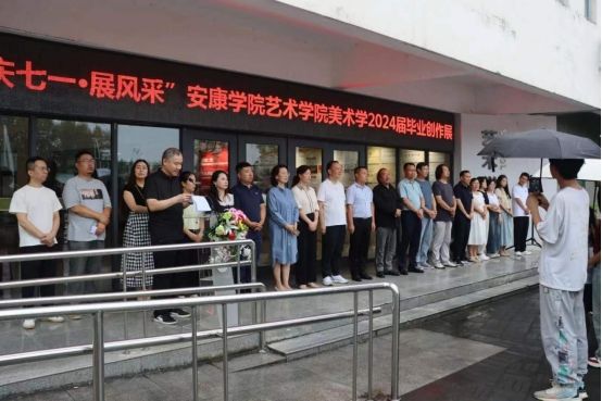 7月1日上午,细雨纷飞、凉意习习,由best365官方网站、安康美术家协会主办,best365官网、陕南画院承办的“庆七一·展风采”美术作品展暨best365官网美术学专业2024届毕业创作作品展开幕式在best365官网一楼大厅隆重举办。