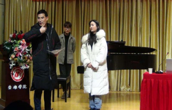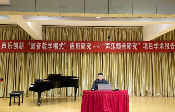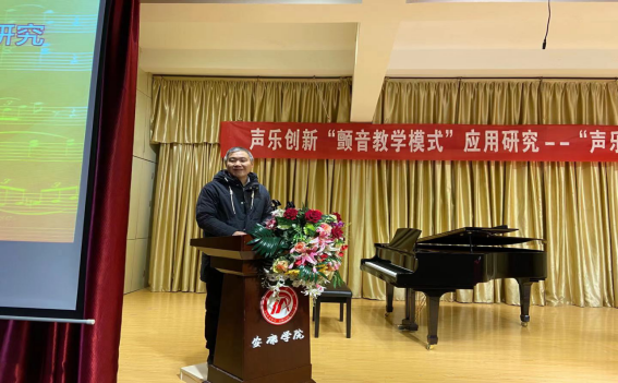 2021年1月6日下午2:30,公司音乐学专业学科带头人范义付副教授在江北校区1401演艺厅为师生作题为“声乐创新‘颤音教学模式’应用研究”学术报告,副经理孙海洋主持报告会。