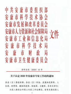 1224日,中共安康市委组织部、安康市人力资源和社会保障局等8家单位联合下发《关于认定2020年安康市专家工作站的通知》(安科协〔202044号),公司best365官网申报的“安康市文化创意产品研发中心”获批安康市专家工作站。