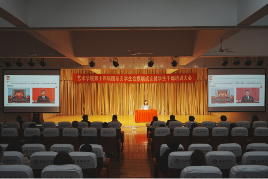 2022年11月17日晚,艺术公司党总支书记黄娟为2022级全体新生作了主题为“坚定不移跟党走 争做新时代好青年”的党的二十大精神宣讲报告。宣讲会采用线上与线下相结合的方式进行,由团总支书记孟莉主持。