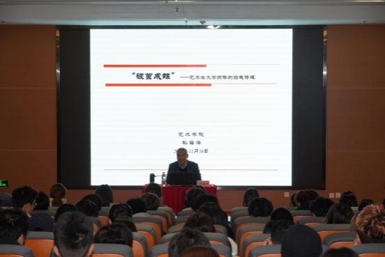 11月16日晚,best365官网副经理孙海洋以“破茧成蝶—— 艺术生大学四年的自我修炼”为主题开展了新生入学教育专题讲座。本次讲座由学工办主任鲁澧主持。
