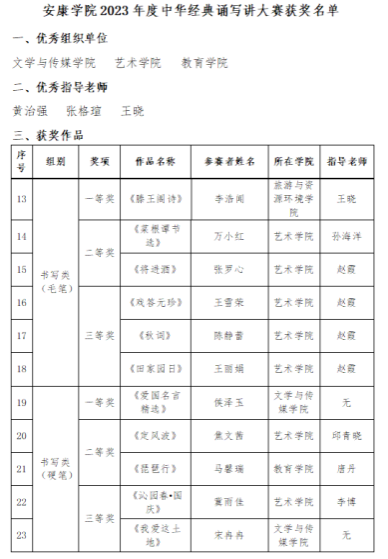 雅言传承文明,经典浸润人生。为贯彻落实党的二十大精神,加大国家通用语言文字推广力度,深化全民阅读活动,传承弘扬中华优秀语言文化。经过层层筛选,2023年中华经典诵写讲大赛获奖结果公布,艺术学子获得佳绩。
