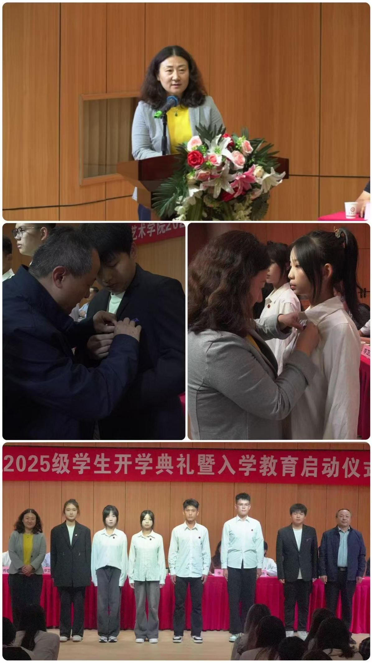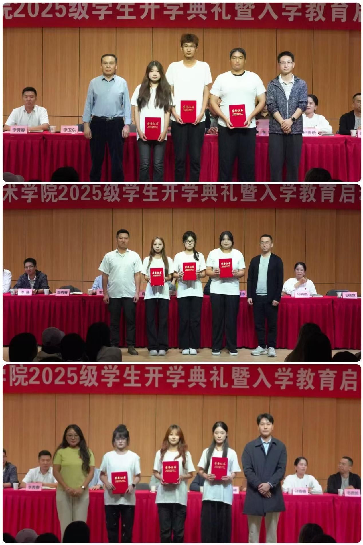 教师代表雷音表达了对新生的热烈欢迎,希望同学们能尽早树立清晰目标,主动修炼科学思维与专业素养,勇敢探索未知领域;2025级新生代表视觉传达设计专业张涵同学进行表态发言;学工办主任邱青晓宣读《2025级新生入学教育方案》;从理想信念、专业认知、学业规划教育等多个方面展开,让新生充分了解公司、公司的基本情况,为今后的学习和生活奠定坚实的基础;副经理李磊宣读《关于表彰2025级员工军训先进个人的决定》,随后与会教师代表为受表彰的同学颁发荣誉证书。在温馨的校徽佩戴环节,院领导为新生代表佩戴校徽,象征新生正式融入best365官方网站best365官网大家庭。