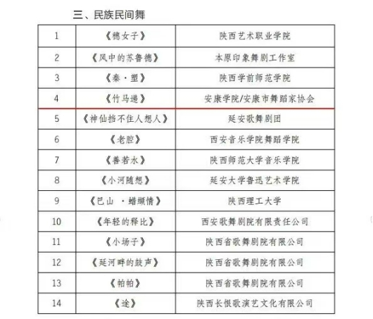 近日,第九届陕西舞蹈荷花奖初评结果揭晓,由公司、教育公司与安康市舞蹈家协会联合创编的舞蹈作品《竹马递》,凭借鲜明的地域文化特色与创新性的艺术表达成功入围终评。