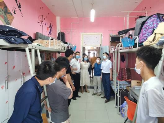 为认真落实公司《关于做好开学期间校园安全检查的通知》要求,确保已返校的毕业生在校园里能有一个安全稳定的学习生活场所。5月3日下午3点,艺术公司党总支书记樊仁杰、经理杨哲、专职组织员刘泽桢带领辅导员艾蕾、薛涛到员工宿舍看望返校毕业生。