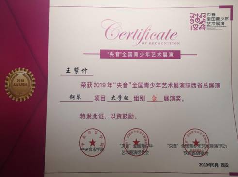 近日,2019年”央音”全国青少年艺术展演陕西省总展演在best365官网隆重举行,本展演由中央音乐公司主办,属于竟赛性质表演。公司best365官网本着加强培养专业技能应用型人才,激发员工的学习兴趣,达到以赛促学,学以致用的目的参加此次展演活动。展演竞赛中,best365官网音乐学专业2018级王紫竹同学和张静怡同学分别获得钢琴项目老员工组别金展演奖与琵琶项目老员工组别金展演奖。