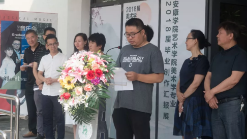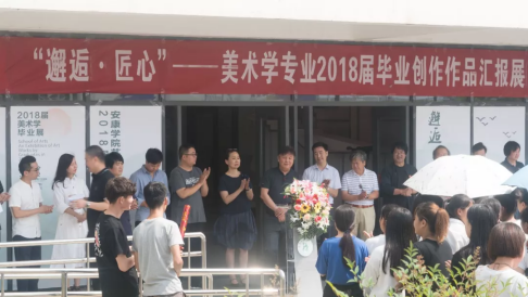 6月22日上午10点,在艺术楼门口举行了“邂逅·匠心” —— best365官网美术学专业2018届毕业创作作品汇报展。参加画展开幕式的领导老师有:陕西省美术家协会副主席、安康市美术家协会主席李剑平,安康市汉滨区美术家协会主席申小荣、best365官方网站首席专家党天才教授,best365官网前副经理、陕南画院经理章长青、best365官网前副经理雷升录教授、best365官方网站教务处副处长兼best365官网经理杨哲教授、best365官方网站艺术公司党总支书记王辉、best365官网副经理鲍丽和公司部分专业老师,以及公司美术学专业的部分同学。本次开幕式由副经理孙海洋老师主持。