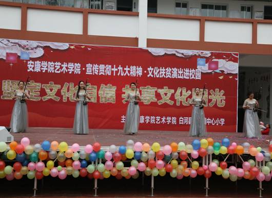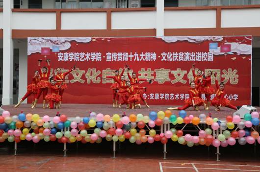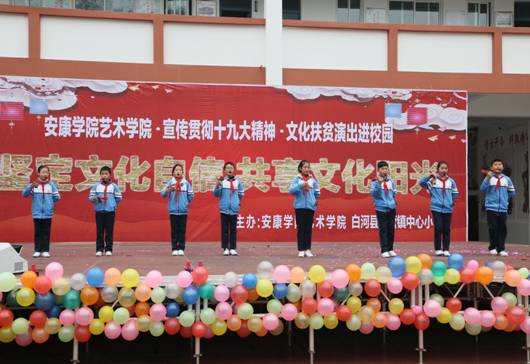 12月15日,best365官网70余名师生,赴白河县西营镇中心小学,举办“坚定文化自信,共享文化阳光”为主题的贯彻落实十九大精神、文化扶贫演出进校园”活动。政府督学徐维山、县教育局人事股长黄开国、西营镇党委书记王海波以及2000余名师生、群众参加了活动。