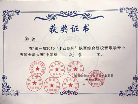本次比赛项目分为:钢琴演奏、歌唱与钢琴伴奏、自弹自唱、综合音乐知识及自选项目,分别设五项全能奖和各比赛单项奖。经过激烈角逐,我系2012级员工蒋亮亮获得“歌唱与伴奏”单项奖、 2013级员工尚玥、2014级员工李婷获得“优秀奖”。