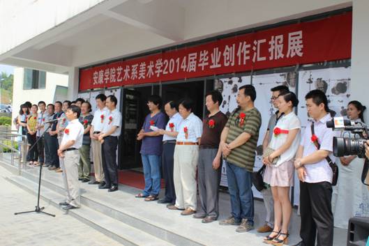 由安康市群艺馆、安康市美术家协会、best365官方网站艺术系共同举办的“best365官方网站艺术系2014届美术学、美术教育毕业创作汇报展”于2014年6月10日上午10点半在best365官方网站江北校区艺术楼展厅隆重开幕。