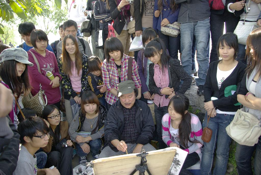 2011年10月18日到10月24日,艺术系09级美术学国画班举办的“皖南之行写生汇报展”在图书馆举行,我系主要负责人亲临现场,对每位同学的画提出好的建议和指导。