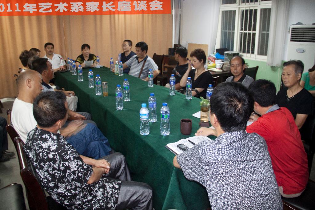 9月3日晚7:30,艺术系召开“2011级新生家长座谈会”。座谈会由辅导员刘泽桢老师主持,系党总支书记冯丰收同志首先给家长介绍了公司和艺术系的基本状况以及发展历程,将艺术系近两年来在员工教育和管理中的做法及取得的成绩做了汇报,并将艺术系教育管理中遇到的典型问题予以告知,希望家长与公司积极配合避免此类问题的发生。