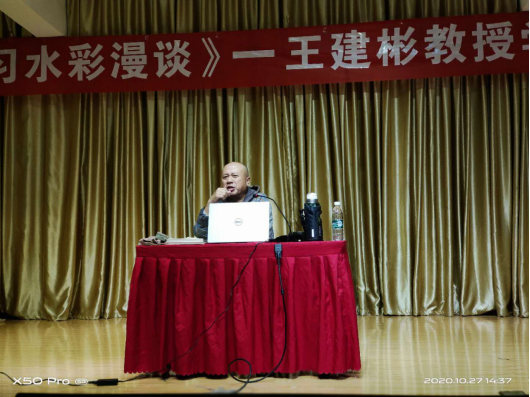 当日下午2时,王建彬教授在best365官网演艺厅为美术学专业师生作了题为“学习水彩画漫谈”的学术报告,以个人的创作学习历程为例分享了其孜孜不倦的创作历程,对公司师生在水彩画创作方面有的较大的激励作用。