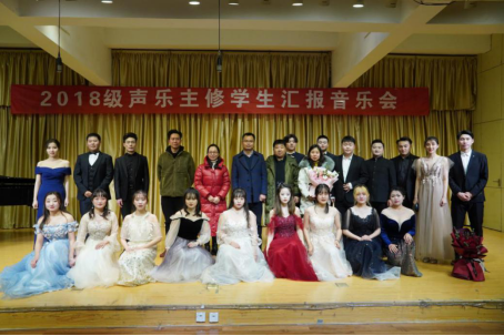 本次音乐会由鄢志莉老师2018级声乐主修18名同学联袂出演,马俊智同学演唱的《跟你走》为音乐会拉开了序幕,这首歌曲表达了中华儿女对党的热爱之情;孟春艳、张转云带来的《长鼓敲起来》描绘了朝鲜族人民敲着长鼓、载歌载舞的热闹景象;惠洁婷带来的《一抹夕阳》选自歌剧《伤逝》,表现了女主人公子君冲破封建枷锁,寻找自由爱情的先进思想;