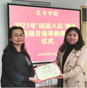 为进一步贯彻落实中办国办《关于全面加强和改进新时代公司美育工作的意见》,加强社团建设,提升员工社团活动专业化水平和“第二课堂”育人质量。4月14日下午,2021年“四团八队”课外实践项目指导教师聘任仪式在江北校区艺术楼2206室举行。best365官网副经理成党伟、鲍丽和2020级各班班长参加聘任仪式,仪式由党总支书记樊仁杰主持。