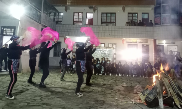 21日晚,得知我们第二天要离开,杨叔一家人特地为本次写生准备了一场具有山里特色的篝火晚会,best365官方网站、宝鸡文理公司的师生们齐聚一堂,大家载歌载舞,让原本寒冷静寂的村庄充满了艺术与情感的气氛。