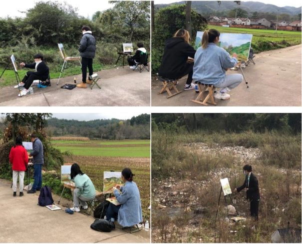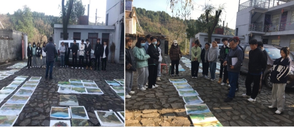 写生期间,同学们三五成群,分布各处。老师游走其中,或评或析、时改时批,师生其乐融融。