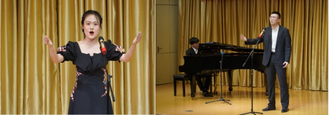 音乐会上,六位同学分别演唱了《鸿雁》《父亲的草原母亲的河》《我像一朵雪花天上来》《我亲爱的》《清晰的记忆》《我爱你中国》《夕阳红》《中国的土地》《儿行千里》《满江红》《天边》等曲目,最后,六位同学合唱了《滚滚长江东逝水》,同学们激昂且饱含深情的演唱,赢得了现场观众的阵阵掌声。