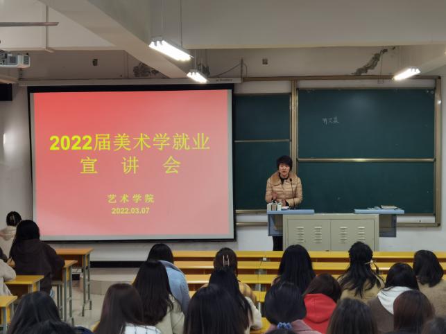 为贯彻落实2022届全国高校毕业生就业创业工作视频会议精神,切实推进就业工作稳步开展,确保2022届毕业生实现更充分和更高质量就业。3月7日,公司在江北校区2202教室召开2022届毕业生就业促进月系列活动之就业宣讲会。美术系系主任杜敏、2022届全体美术学毕业生参加了会议。宣讲会由毕业班辅导员魏麟主持。