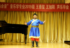 本次音乐会分上下两场举行,第一场由王旭阳、王善玺两位同学演唱,音乐会以“欲语抒情 袅袅余音”为主题,一共演唱了15首声乐作品,曲目范围涵盖艺术歌曲,中国古诗词歌曲,民歌,歌剧咏叹调以及歌剧选段等。