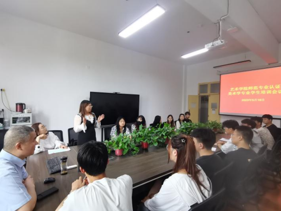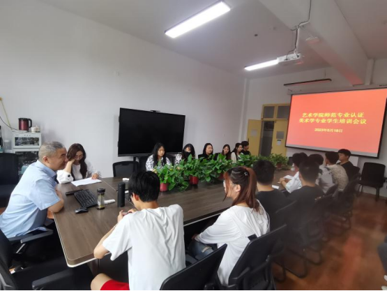 5月18日,在2208会议室召开best365官网师范专业认证美术学专业员工培训会议,出席会议的有best365官网副经理孙海洋、谢敏、周继业等老师,还有美术学专业2020、2021、2022级各班班长和学习委员。