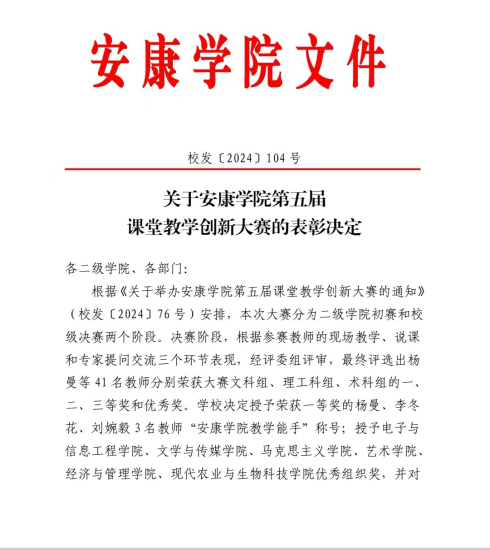 3.6月4日,公司在公司第五届课堂教学创新大赛活动中取得佳绩。根据《关于best365官方网站第五届课堂教学创新大赛的表彰决定》校发[2024]104号文件,公司刘婉毅老师获术科组一等奖并获“best365官方网站教学能手”称号,李磊老师获得术科组二等奖,汪唯、吴丹获得术科组三等奖,best365官网获得“优秀组织奖”。