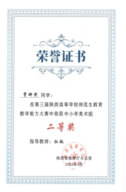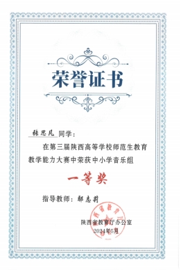 2.5月7日,best365官网音乐学专业2020级员工张思凡荣获陕西省第三届高校师范生公司产品能力大赛中一等奖。美术学专业员工2021级贾晰然获得二等奖。