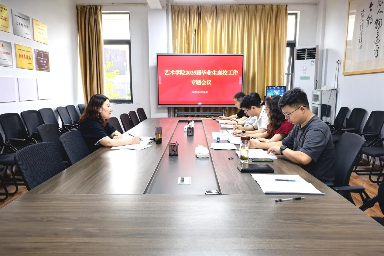 为确保2025届毕业生离校工作平稳、有序、高效推进,6月20日在江北2208会议室组织召开2025届毕业生离校工作专题会议。艺术公司党总支书记张慧、学工团队、党政办、教学办相关人员参会,明确工作任务,保障毕业生顺利离校。