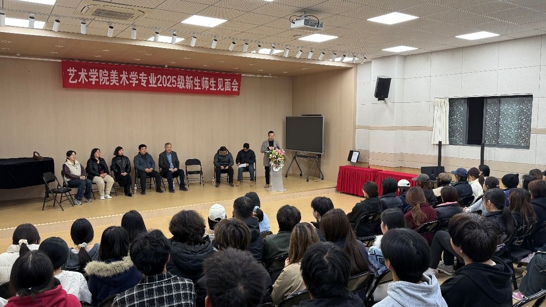 11月14日晚,公司在江北2415教室召开2025级美术学专业新生师生见面会暨班主任见面会,系主任毛德龙及美术学专业部分教师、新生班主任、全体2025级美术学专业新生共计90余人参加了本次见面会,会议由2025级美术学专业辅导员李锦龙主持。