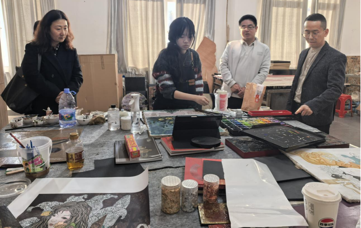 宣讲会后,在福建师范大学美术公司王龙飞老师的热情引导下,张慧书记一行参观了该校漆画专业教室,实地考察了漆画教学设施、实训场地建设情况,了解了漆画的课程设置,为best365官方网站美术学专业建设与教学改革提供了有益借鉴。