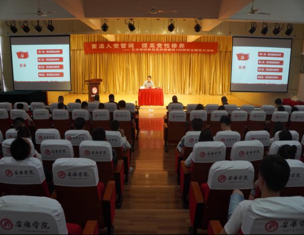 为庆祝中国共产党成立100周年,加强师生党性教育,改进学习工作作风,深入推进党史学习教育。2021年6月30日下午,艺术公司党总支在江北校区1401演艺厅开展了“重温入党誓词,提高党性修养”庆祝建党100周年主题党日活动暨党总支书记讲党史学习教育专题党课。全体师生党员、发展对象、入党积极分子及团总支、员工会主要员工干部150余人参加了活动。本次活动由党总支副书记李万明主持。