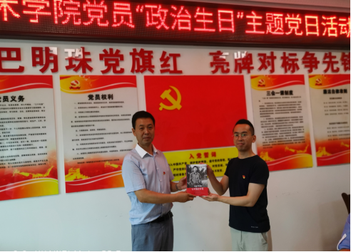本次党日活动主要围绕“四个一”展开,即送上一份生日祝福,赠送一份生日礼物,重温一次入党誓词,发表一次生日感言。全体党员在党员活动室面对党旗,重温入党誓词,强化党员身份认同,教育党员时刻牢记入党誓词,不忘入党初心。原党总支书记王辉为党员同志赠送了政治生日贺卡,党总支书记樊仁杰为党员同志赠送学习读物《习近平的七年知青岁月》。随后,每位党员同志结合工作思想实际,分析查找自身差距,进行了深刻的交流发言。