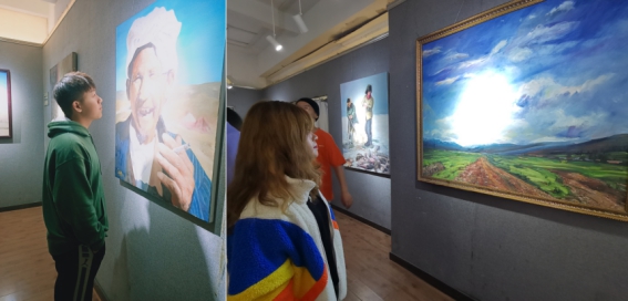 此次展览作品涵盖了国画、油画、水彩、工笔等作品六十余幅。其中有欧歌时代气息的政治作品,描绘人物故事的主题创作,也有水彩风景写生作品。本次观展活动,进一步丰富了员工们的文化生活、激发了同学们的学习热情、培养了同学们对书画作品的鉴赏水平,无论是对同学们艺术情感的培养还是同学们的身心健康发展都具有深远的意义。