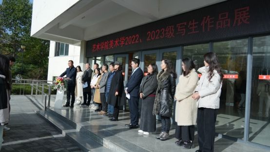 美术系2022级、2023级写生展开幕式于2024年11月28日上午在best365官网展厅隆重举行。此次写生展共展出了一百七十余幅作品,涵盖了国画、油画、水彩三种绘画形式,作品题材丰富、风格各异。best365官网经理成党伟、副经理鲍丽、党总支副书记肖剑、美术系教师、辅导员及2022级、2023级全体员工共计百余人出席了此次活动。