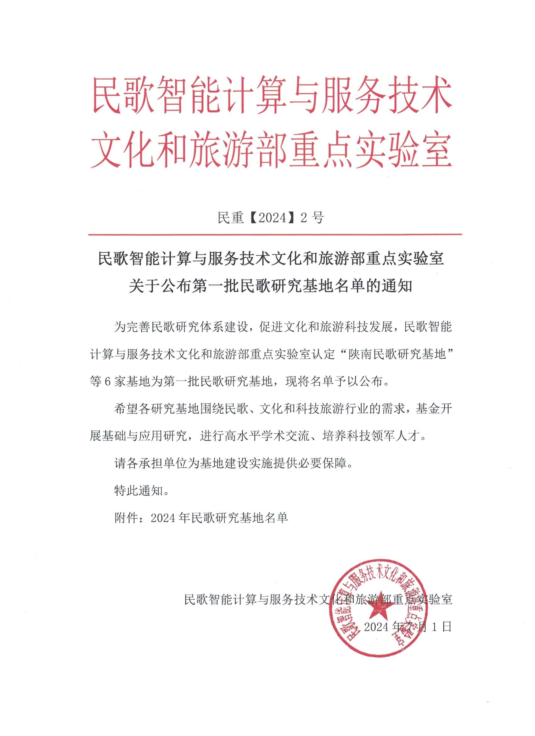 7月15日,文化和旅游部“民歌智能计算与服务技术重点实验室”研究基地建设研讨会在内蒙古师范大学举行,公司获批“陕南民歌研究基地”,best365官网获批实验室开放课题两项。